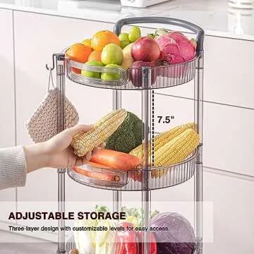 Show moreIntroducing the **HYBRIDEAS 3-Tier Rolling Storage Cart**, a perfect blend of functionality and style that elevates any space in your home or office. Standing tall at **24 inches**, this elegantly crafted rolling cart features **three spacious circular baskets** designed for versatile storage. Each basket measures **13" L x 13" W x 2" H** and boasts a solid weight capacity of **20 lbs**, making it ideal for everything from organizing craft supplies to serving snacks. Constructed from clear, high-quality plastic, this cart not only offers durability but also adds a chic modern touch to your decor.