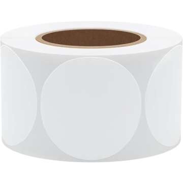 Hybsk 2 inch Circle Color Direct Thermal Stickers Shipping Labels for Barcodes,Name Tag,DIY Logo Design,QR Code,Inventory– Compatible with Zebra,Rollo and More-750 pcs (2 inch,White)