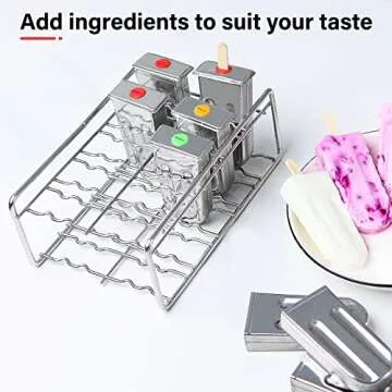 HYDDNice Stainless Steel Popside Molds Kit, 10 Ice Pop Makers Mold with Rack, 10 Silicone Seals, 100 Reusable Bamboo Sticks, 20 Pop Bags,Cleaning Brush