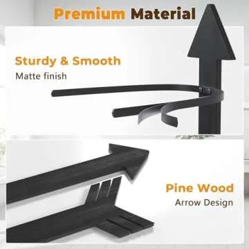 HYDERMUS Hat Organizer for 10 Baseball Caps and 3 Cowboy Hat Cowboy Hat Rack for Wall with Solid Wood Arrow Hat Storage Cowgirl Hat Hanger Closet Storage and Organizer Black
