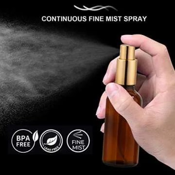 Show moreIntroducing the Hydior Amber Glass Spray Bottles – your utmost companion for crafting, storing, and styling your favorite fragrances and essential concoctions. This 2 pack of 3.4oz amber glass spray bottles comes equipped with elegant golden metallic aluminum spray tops and practical dust caps, combining aesthetic appeal with functionality. Whether you're a DIY enthusiast or simply someone who enjoys personalized scents, these versatile bottles are suitable for all your needs. With added accessories like a funnel, dropper, and four stickers, mixing and labeling your favorite blends has never been easier!