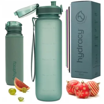 Show more The Hydracy Water Bottle with Time Marker is not just an ordinary hydration tool; it's a lifestyle upgrade! Perfectly engineered for active individuals and families, this large-capacity 32 oz bottle offers a solution to the common problem of staying hydrated throughout busy days. Crafted from 100% BPA-free Tritan plastic, it ensures you drink safely without any unpleasant plastic aftertaste. It's designed to cater to those who love fitness, outdoor activities, or simply need to increase their water intake while juggling daily tasks.