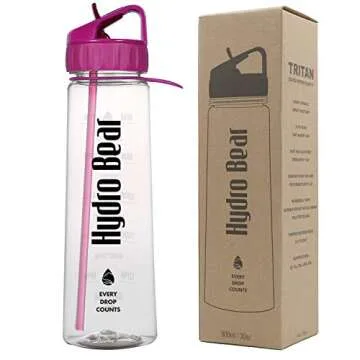 Hydro Bear 30oz Motivational Fitness Sports Water Bottle with Time Marker, Measurements, Drink More Water Daily, BPA Free Tritan with Flip Straw, for Outdoors Camping Hiking Cycling