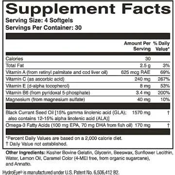 HydroEye Softgels - Dry Eye Relief - Features GLA, EPA, DHA and Other Key Nutrients - 120 Count