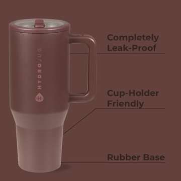 Show moreIntroducing the HydroJug Traveler, your new favorite water bottle designed to keep up with your active lifestyle! With a generous capacity of 32 oz, this travel tumbler is perfect for both hot and cold beverages, making hydration effortless wherever you go. Engineered with an ambidextrous lid, a convenient flip straw, and a comfortable grip handle, it's the ideal companion for hiking, workouts, office days, or even just lounging at home. Its sleek and functional design ensures that you'll not only stay hydrated but also look good doing it.