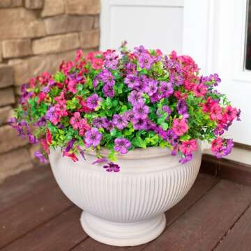 HyeFlora Artificial Fake Plants Flowers for Outdoor Spring Decoration, 12 Bundles Faux Silk Daisy for Planter Pot Colorful UV Resistant Look Real for Home Front Door Porch Patio Outside Yard
