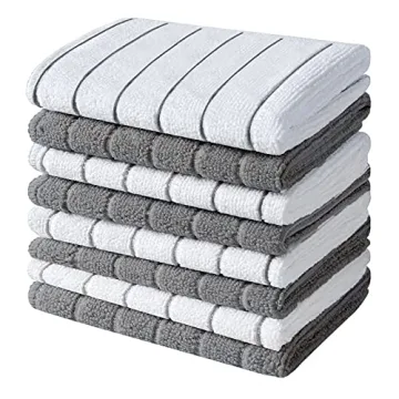 Measuring a compact **12 x 12 inches**, our dishcloths are designed for versatility, perfect for handling all kitchen tasks. The quick-drying feature means less laundry, saving you precious time and keeping your kitchen organized. Enjoy **lint-free** wiping that leaves your glassware sparkling without unsightly streaks or scratches, making each cleanup an absolute breeze. The pack includes a value collection of **8 stylish dishcloths**—four in sleek gray stripes and four in classic white stripes, offering the perfect balance of beauty and utility in your kitchen ensemble.