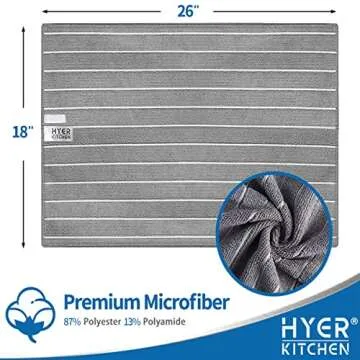 Show moreIntroducing the HYER KITCHEN Microfiber Kitchen Towels, the perfect combination of style, functionality, and quality that every kitchen deserves. Crafted from 100% premium microfiber, these towels stand out with their elegant stripe design in classic gray and white, ensuring they not only serve as practical tools but also enhance your kitchen decor. Sized generously at 18 x 26 inches, they offer ample coverage for all your cleaning needs, be it drying dishes, wiping spills, or a casual kitchen accent when draped over the handle of your stove. Customers rave about their incredible absorbency, capable of soaking up six times their weight in liquid, making them an indispensable part of daily kitchen life.