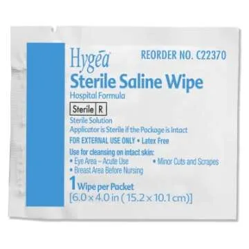 Show moreIntroducing the Hygea C22370 Sterile Saline Wipe, a versatile cleansing solution designed specifically for sensitive skin areas. Measuring 6" x 4", each wipe is pre-soaked in a sterile saline solution that ensures gentle, effective cleansing without causing irritation. Ideal for various applications, these wipes are perfect for post-operative care, cleaning the delicate eye area, and managing care for the umbilical cord. They also excel in general skin cleansing, making them suitable for treating minor cuts, scrapes, and skin prone to diaper rash. With a focus on hygiene and safety, each wipe is individually packaged, providing peace of mind and convenience with every use.