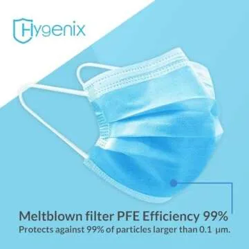 Hygenix 3ply Disposable Face Masks PFE 99% Filter Quality Tested by a US lab (Pack of 50 Pcs)