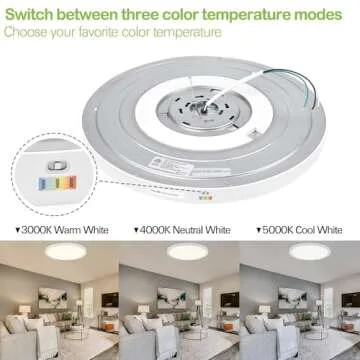 hykolity 18 Inch LED Round Flat Panel Light, White, 32W, 3200lm, 3000K/4000K/5000K CCT Selectable, 120°Beam Angle, Dimmable Edge-Lit Flush Mount Ceiling Light Fixture - ETL Listed
