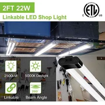 hykolity 4 Pack Linkable LED Shop Light for Garage, 2FT 22W Utility Light Fixture, 2500lm, 5000K Daylight LED Workbench Light with Power Cord, Hanging or Flush Mount, Black - ETL