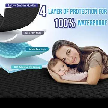 Show more Transform your sleep experience with the HYLEORY King Size Waterproof Mattress Pad Protector, designed specifically for those who demand the best in comfort and protection. This revolutionary product not only safeguards your mattress against spills and stains with its advanced waterproof TPU backing, but it also enhances your sleep with its breathable and plush fabric. Experience the ultimate in convenience and peace of mind, knowing your mattress is shielded from the daily rigors of life, while indulging in the soft, noiseless fabric that cradles you to sleep. Crafted with family needs in mind, it's perfect for homes with kids, elderly, or pets, making it an essential item for any household.