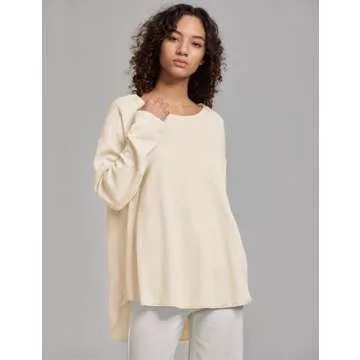 HYLLGUD Womens Waffle Knit Tops Long Patched Sleeve Casual Blouses Crewneck Oversized Pullover Shirts