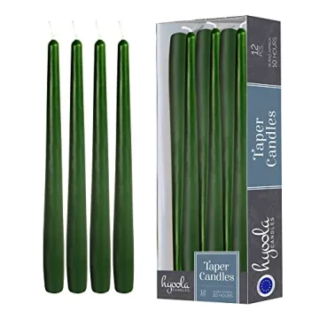 Show moreIntroducing the Hyoola 12 Pack Tall Taper Candles, a stunning collection designed to elevate your ambiance with their rich hunter green hue and impeccable elegance. Crafted with care and imported from Europe, these candles are made from 100% paraffin wax paired with pure cotton wicks, ensuring a clean, smokeless burn for up to 10 hours. Ideal for creating a warm, inviting atmosphere, these tall taper candles set the mood for any occasion, from romantic dinners to festive celebrations.
