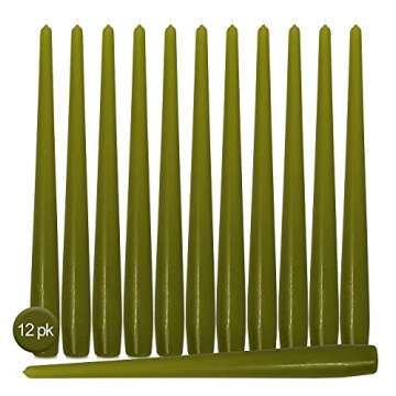 Hyoola Tall Taper Candles - 10 Inch Olive Green Unscented Dripless Taper Candles - 8 Hour Burn Time - 12 Pack