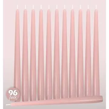 Hyoola Tall Taper Candles Bulk - 12 Inch Light Pink Unscented Dripless Taper Candles - 10 Hour Burn Time - 96 Pack