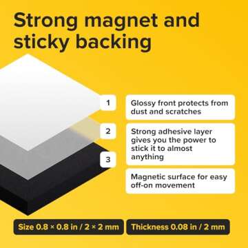 Hyper-Sticky Magnets with Adhesive Backing - Strong Magnetic Squares for Whiteboard, Fridge, Crafts - Easy to Cut Stickers for Planning and Organization - 30pcs