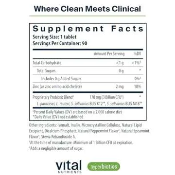 Hyperbiotics Vital Nutrients Pro Dental Probiotic | Clinically Studied BLIS K12 and M18 | Oral Probiotics for Bad Breath Treatment for Adults | Oral Health for Teeth and Gums | 90 Mint Tablets