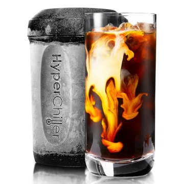 Show more Discover the ultimate solution for iced coffee lovers with the revolutionary HyperChiller! NEW, IMPROVED, and STRONGER than ever before, this innovative product has been meticulously designed to meet the needs of caffeine enthusiasts everywhere. No more waiting for your beverages to cool down or settling for watered-down drinks; the HyperChiller chills your coffee in less than 60 seconds using a patented system that employs regular water – completely free from chemicals or gels.