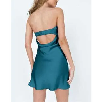HYPERFIRE Women's Elegant Strapless Tube Cut Out Back Mini Dress Summer Cocktail Dresses Royal Blue Large