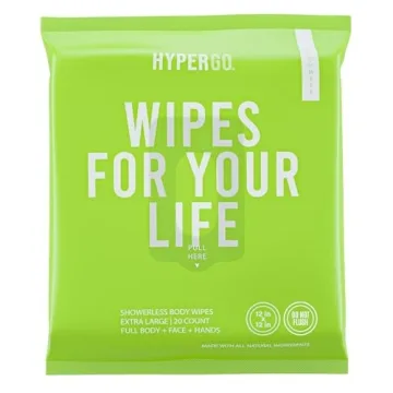 HyperGo Body Wipes - No Rinse Wet Wipes for Adults, All Natural Shower Bathing Wipes, Refreshing Body and Face Cleansing Wipes for Women and Men, 20 Extra Large Disposable Washcloths, 12x12 Cucumber
