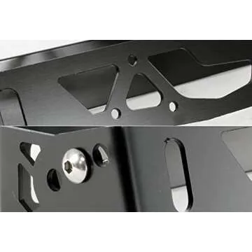 Show more Introducing the HYPERSPEED Universal Brush Aluminum Front Bumper Angle Adjustable Tilt License Plate Frame Holder, an essential addition to your vehicle if you aim to merge exquisite aesthetics with functionality. Crafted from high-quality lightweight CNC machined 6061 T6 grade solid billet aluminum, this license plate holder exhibits unparalleled durability while offering a sleek, modern touch to your ride. Designed to fit all standard USA license plates, it ensures optimal compatibility across all vehicle types. Its adjustable tilt feature allows you to reposition your license plate for ideal aesthetic preference or enhanced airflow, leveling up your car’s JDM style while adhering to street legality.
