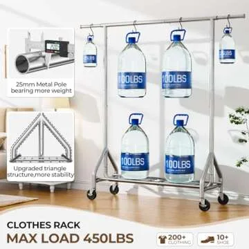 HYSEYY Heavy Duty Clothes Rack Load 450 LBS, Metal Garment Rack, Standing Rolling Clothing Rack for Hanging Clothes with Sturdy Wheels & Shelves, Portable Closet Wardrobe Rack,Sliver