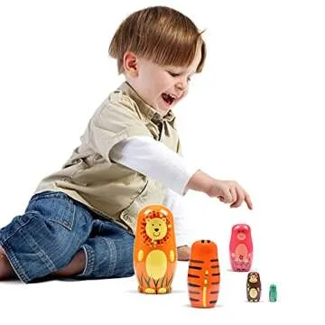 HYSIGUAN Animal Russian Nesting Dolls Wooden Gift Boxes Birthday Gifts Handmade Painted Matryoshka Nesting Dolls Wedding Decorations Party Decorations Room Decorations (Orange Bear)