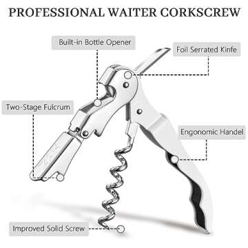 - Dual Functionality: Includes a foil cutter and bottle cap opener, providing versatility for any occasion.