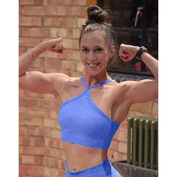 HYZ Women's Seamless Workout Gym Crop Top Adjustable Straps Sports Bra with Removable Padded Blue