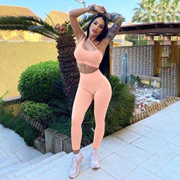 HYZ Women's Workout 2 Piece Outfit High Waist Sports Legging Stretch Yoga Crop Top Bra Sets Pink