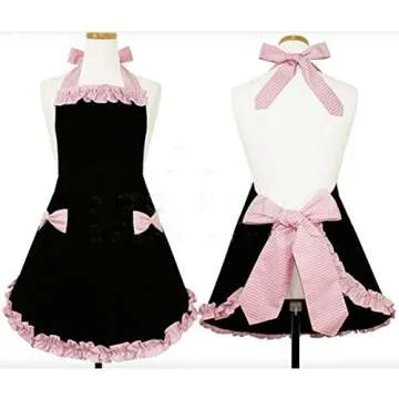 Show moreIntroducing the Hyzrz Cute Fashion Apron, an ideal blend of style and utility designed specifically for women and girls who enjoy cooking or working in kitchens. Crafted from high-quality polyester-cotton material, this apron promises not only a chic appearance but also durability and comfort, standing up to the rigors of everyday use. Its sophisticated black color adds a touch of elegance, making it perfect for both home cooks and restaurant professionals alike. The apron features a comfortable fit with adjustable neck straps and ties at the waist, ensuring you can move freely while you whip up your favorite meals.