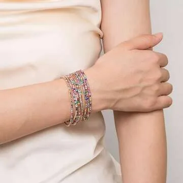 Show moreIntroducing the stunning HZMAN 10 Pcs Tennis Bracelets Set for Women, the perfect combination of elegance and versatility. Crafted with meticulous attention to detail, each bracelet in this set features beautifully dainty cubic zirconia stones that add a touch of sparkle to any outfit, making them your go-to accessory for both special occasions and everyday wear. Made from premium 14K gold plated brass, these bracelets are not only visually pleasing but also durable, maintaining their shine and resisting tarnish over time.