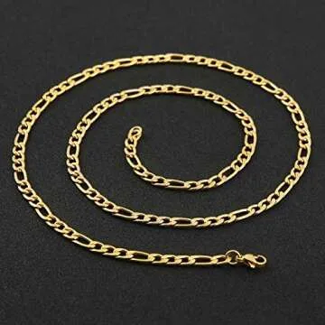 HZMAN Men Women 24k Real Gold Plated Figaro Chain Stainless Steel Necklace, Wide 3mm 5mm 7mm 9mm