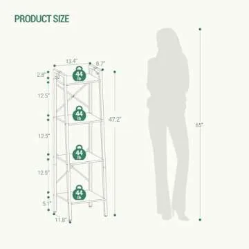The ladder shelf is designed with stability and sturdiness in mind. Its solid frame, reinforced by X-shaped bars and secured with an anti-tip kit, provides exceptional support, while adjustable feet ensure balance on uneven surfaces.