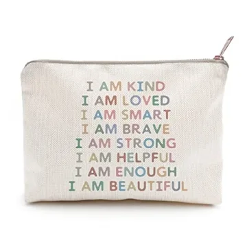 Why You Will Love This Product?Imagine starting your day with a gentle reminder of the qualities that define you - kind, smart, and loved. This bag is more than just a storage solution; it embodies love, self-acceptance, and positivity. It enhances your daily routine, encourages self-expression, and brightens your day every time you glance at it. Whether you’re traveling, getting ready for the day, or simply need a dose of inspiration, this bag delivers emotional as well as practical benefits.