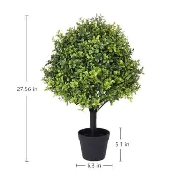 I.C.ELAINE 27" Faux Boxwood Plants Indoor & Outdoor Set of 2, UV-Resistant Topiary Trees Artificial Bushes & Shrubs, Fake Potted Plants Evergreen for Planters Front Porch Patio Decor