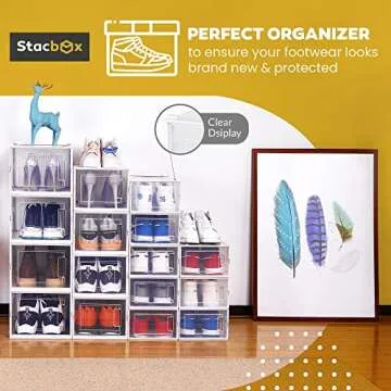 I&D DESIGNS STACBOX Shoe Organizer | Stackable Easy to Assemble for Closet | Protects Shoes | Clear Display | Declutters Spaces | Multipurpose Storage Container (SMALL Size 6 Pcs)