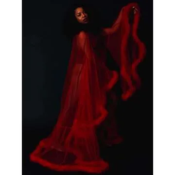 Show moreIndulge in the luxurious allure of the i Dui Bridal Old Hollywood Sexy Robe, a breathtaking addition to your bridal wardrobe. Perfectly blending elegance and sensuality, this exquisite boudoir robe is crafted from high-quality materials designed to drape beautifully over your figure. The soft tulle illusion and feather detailing enhance your glam factor, making it ideal for special moments like your wedding day or intimate celebrations. It’s not just a robe; it’s a statement piece that captures the timeless glamour of Old Hollywood, ensuring you feel like a star on your special day.