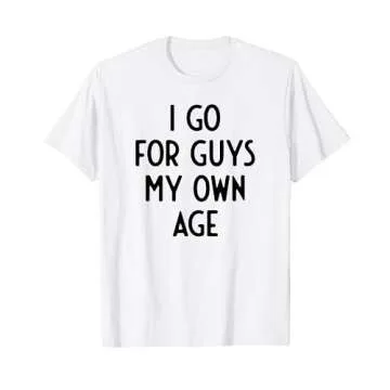 Compared to typical party tees, the "I Go For Guys My Own Age" shirt stands out thanks to its humorous twist and eye-catching statement. While many party outfits focus solely on aesthetic appeal, this tee combines fun with functionality, ensuring you not only look good but feel good too. Plus, it offers a refreshing alternative to standard graphic tees often seen on the market.