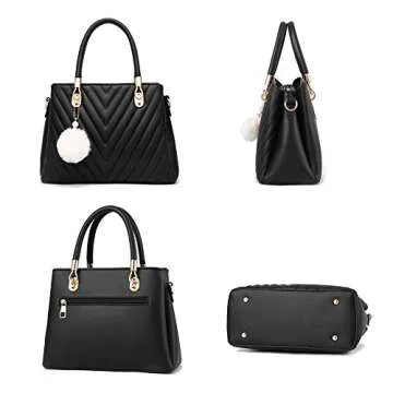 I IHAYNER Womens Fashion Leather Handbags Quilted Purses Top-handle Totes Satchel Bag for Ladies Shoulder Bag for Women with Pompom