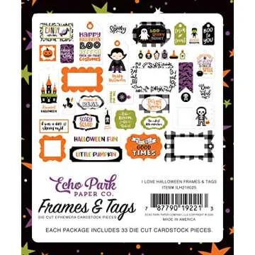 Show moreGet ready to unleash your creativity this Halloween with the **I Love Halloween Frames & Tags** by Echo Park Paper Company! This delightful collection features **33 uniquely designed shapes** that are perfect for adding a spooky touch to your crafts, scrapbook pages, and holiday decorations. These beautifully crafted ephemera pieces are made from high-quality materials, ensuring they not only look fantastic but also last through the seasons. Whether you’re crafting a haunted album or creating festive Halloween cards, these frames and tags will elevate your projects and make them utterly enchanting.