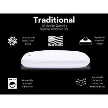I Love Pillow Traditional Advanced Memory Foam Sleeping Pillow, Ergonomic Design, Perfect for Stomach, Back and Side Sleepers Machine Washable Cover, Queen, Medium, White