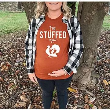 I'm Stuffed Thanksgiving Pregnancy T-Shirt Women Funny Baby Feet Turkey Graphic Tee Cute Fall Turkey Maternity Tops (As Shown, M)