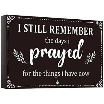 Show more Introducing a unique piece of decor that transcends mere decoration - the Prayed Sign Application. This extraordinary metal wall art captures not only the eye but the very essence of gratitude and reflection, making it a heartfelt reminder of the blessings in your life. With elegant craftsmanship and a timeless design, this piece is the perfect fit for any modern farmhouse or classic home. Made from high-quality wood with a beautifully distressed finish, it features the inspiring quote 'I Still Remember The Days I Prayed For The Things I Have Now', turning words into a transformative experience that invites conversation and introspection.