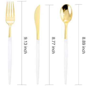 Our gold silverware is made from 100% food grade, non-toxic, BPA-free plastic.