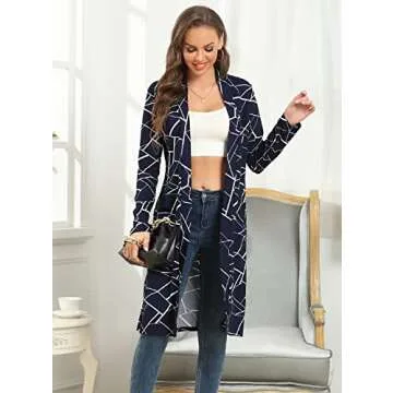 While there are many cardigans available in the market, the I2CRAZY Casual Long Sleeve Midi Duster Cardigans stands out thanks to its blend of quality material and stylish design. Many alternatives focus solely on either comfort or aesthetics; ours successfully incorporates both, ensuring you never have to choose between style and comfort. Our unique geometric prints not only freshen up your wardrobe but also offer a distinctive look that sets you apart from the crowd.