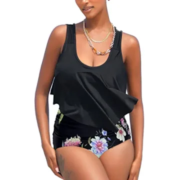 Show moreIntroducing the I2CRAZY Women High Waisted Swimsuit Two Piece Ruffled Flounce Top with Ruched Bottom, the ultimate swimwear piece designed for women who desire to make a statement while feeling comfortable and supported at the beach or poolside. This exquisite bikini set combines style with functionality, showcasing a stunning ruffled flounce top that not only adds a touch of femininity but also provides excellent support with its adjustable shoulder straps and removable soft padding. The high-waisted ruched bottom not only covers the belly but also beautifully flatters and enhances your curves. Crafted from a quality blend of polyester and spandex, this swimsuit is soft to the touch, stretches with your movements, and dries quickly after a dip. Embrace your summer adventures with this must-have swimwear that perfectly balances fashion and comfort.