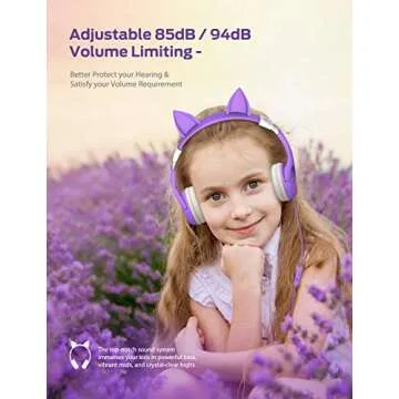 iClever HS01 Food Grade Kids Headphones with Microphone, 85/94dB Volume Control, Hello Kitty Cat Ear Headphones for Kids Boys Girls, Childrens Headphones for Online School/Travel/Tablet, Purple